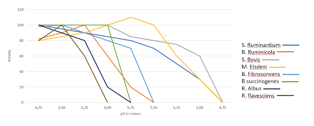 in the rumen is directly correlated with the pH of the rumen itself and with a